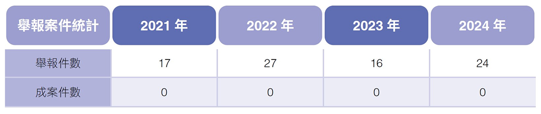 此外,我們設有網路及實體的違反反賄賂誠信經營行為舉報信箱,依「誠信經營作業程序及行為指南」等相關辦法規定,由稽核室為受理單位,舉報人得以匿名方式舉報(檢舉信箱:whistle@hotaimotor.com.tw),並承諾保護檢舉人不因檢舉情事而遭不當處置,以保障舉報人的工作權益並鼓勵誠信透明的治理文化。稽核室並應將檢舉情事、其處理方式及後續檢討改善措施,向董事會報告。 2024 年接獲舉報案件為 24 件、成案件數 0 件,因相關舉報案件性質均為關係企業的人員管理相關案件,皆已轉送集團各擔當單位對應。