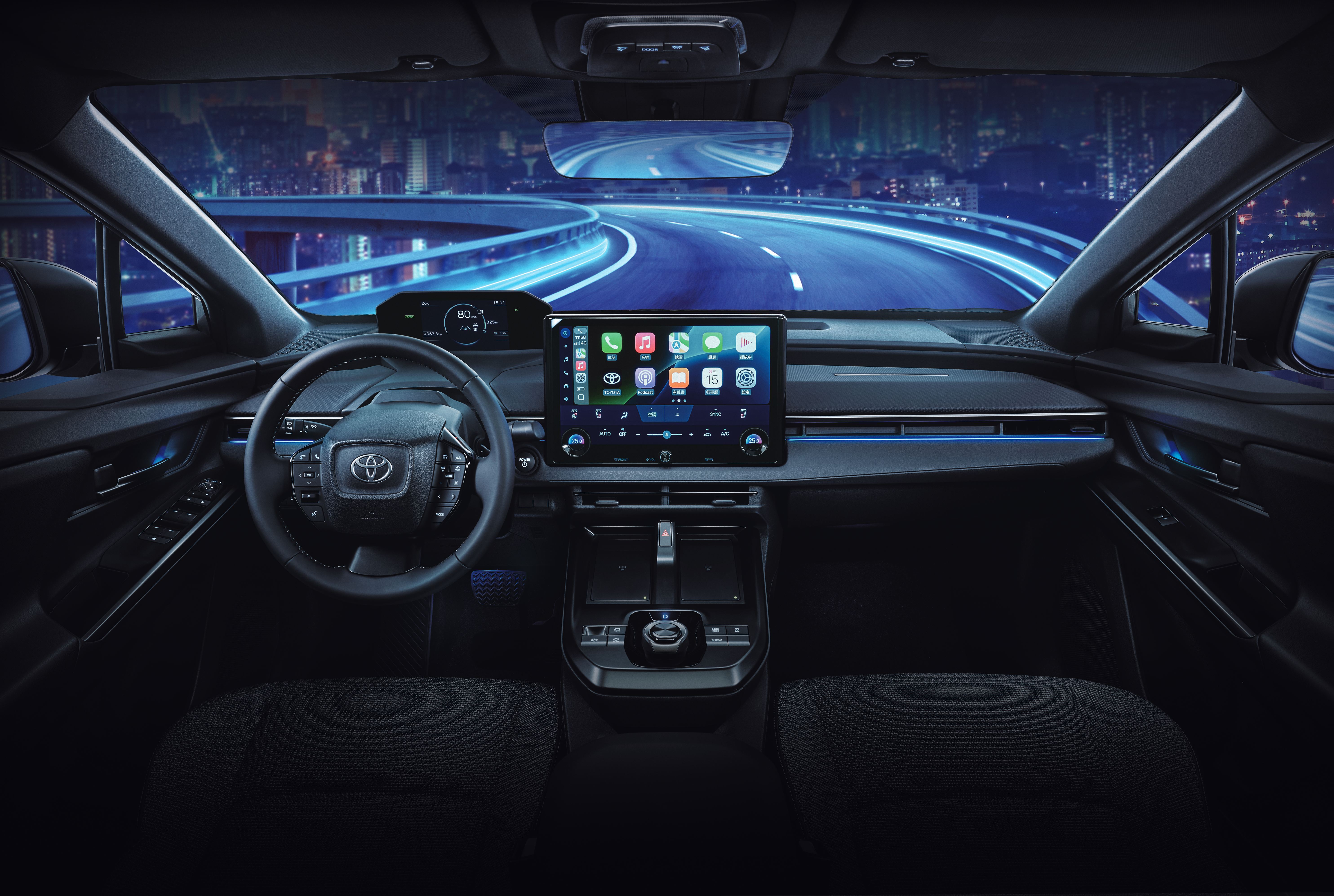 全新內裝設計充份展現bZ4X純電設計質感,薄型儀錶台水平延伸,搭配細長出風口,提升橫向寬敞感。科技配備方面,為滿足車主日常使用的便利性需求,更升級14吋影音主機、雙無線充電座,全車配備4個USB-C充電孔,並新增後廂110V供電(V2L)功能;為持續優化座艙舒適性,本次更全新配備64色氣氛燈,空調搭載PM 2.5 濾網+ nanoe™X負離子淨化,為消費者帶來更加舒適美好的乘坐體驗。