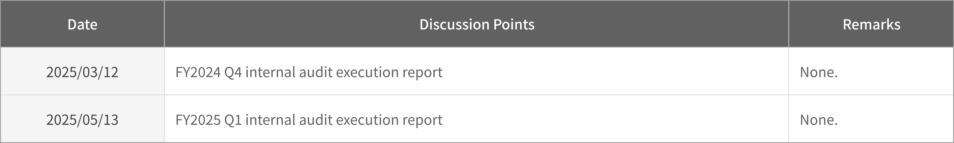 (1) Independent directors communicate with the accountants at least once a year. The accountants report financial results, operating results of the subsidiaries and internal audit results to independent directors. They also discuss and communicate the questions raised by the participants in the meeting.